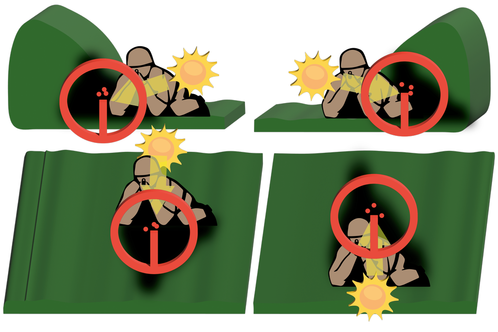 - Déplacer fréquemment l’emplacement des pièces FM et des mitrailleuses lorsqu’elles tirent à grande cadence. Les résidus de poudre se déposant sur la neige forment de grosses taches noires qui dévoilent la position ou effacer avec de la neige fraîche.